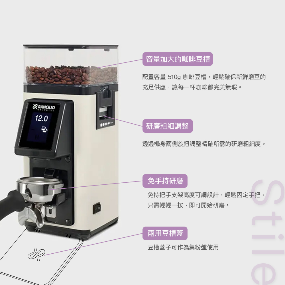 RANCILIO Stile 家用定量咖啡磨豆機|觸控螢幕 58mm 平刀盤