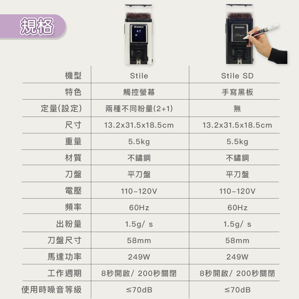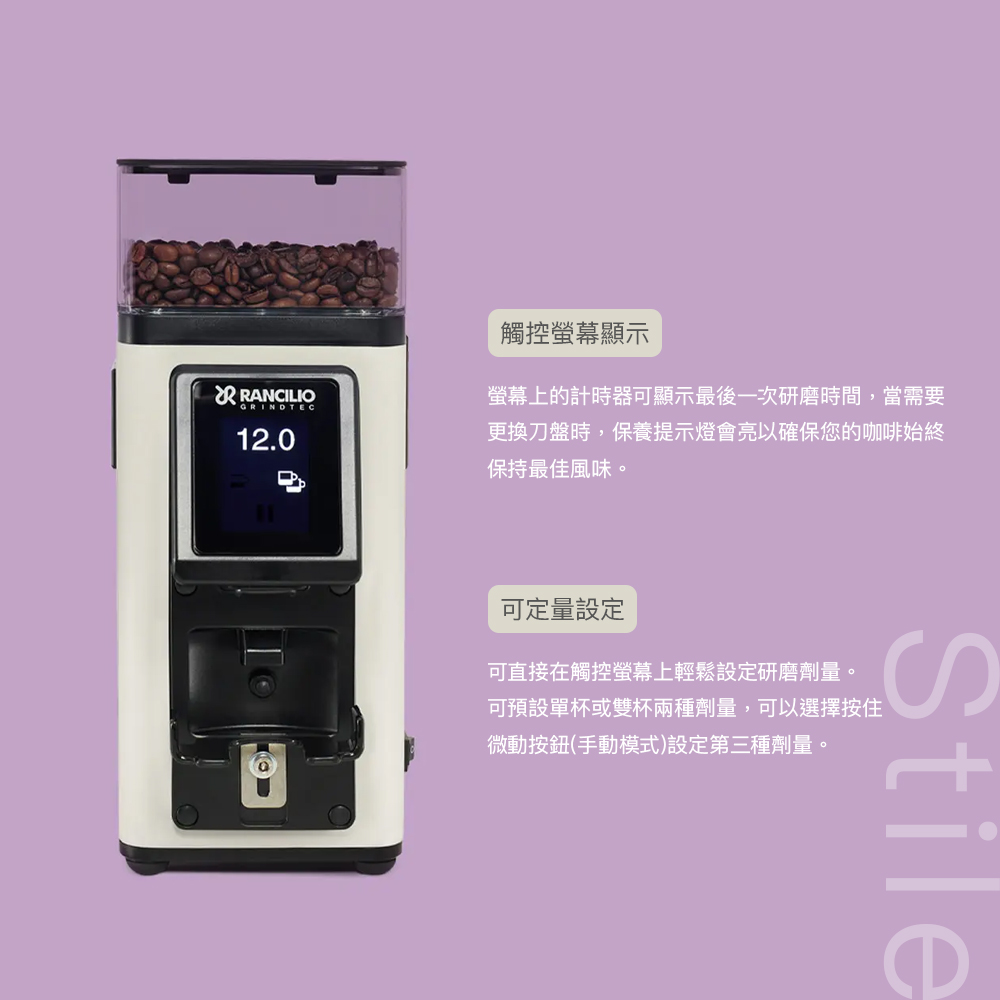 RANCILIO Stile 家用定量咖啡磨豆機|觸控螢幕 58mm 平刀盤